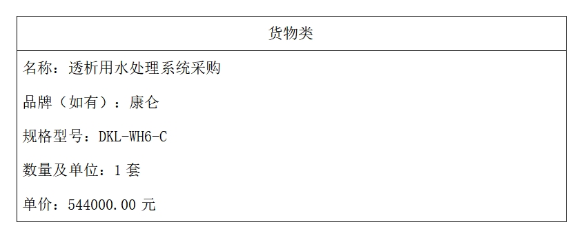二、項(xiàng)目名稱(chēng):透析用水處理系統(tǒng)采購(gòu)