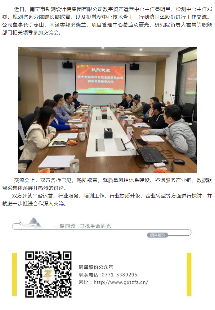 合作交流 | 南寧市勘測設(shè)計(jì)院集團(tuán)有限公司到訪同澤股份交流